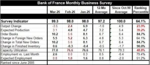 In addition, only 3 readings weaker month-to-month in March were output change, expected production, and expected employment.